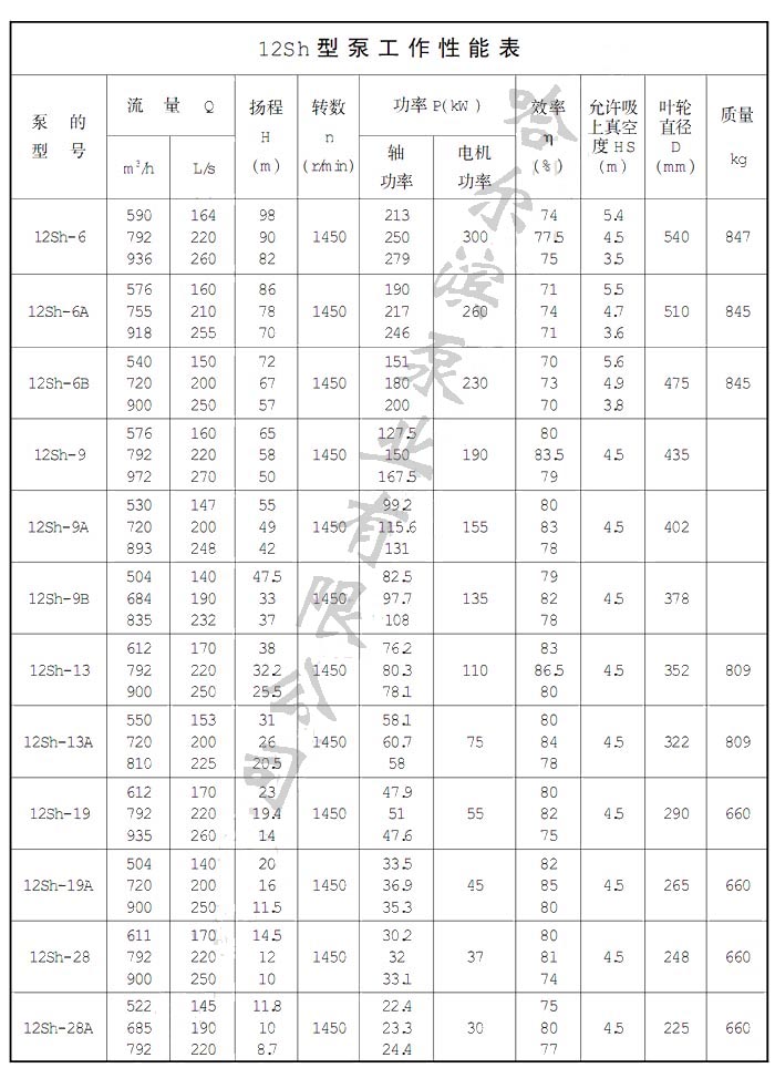 Sh型輸送介質的最高溫度不得超過80℃。適用于工廠、礦山、城市給水、電站、大型水利工程、農田灌溉和排澇等。