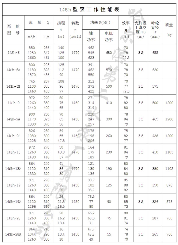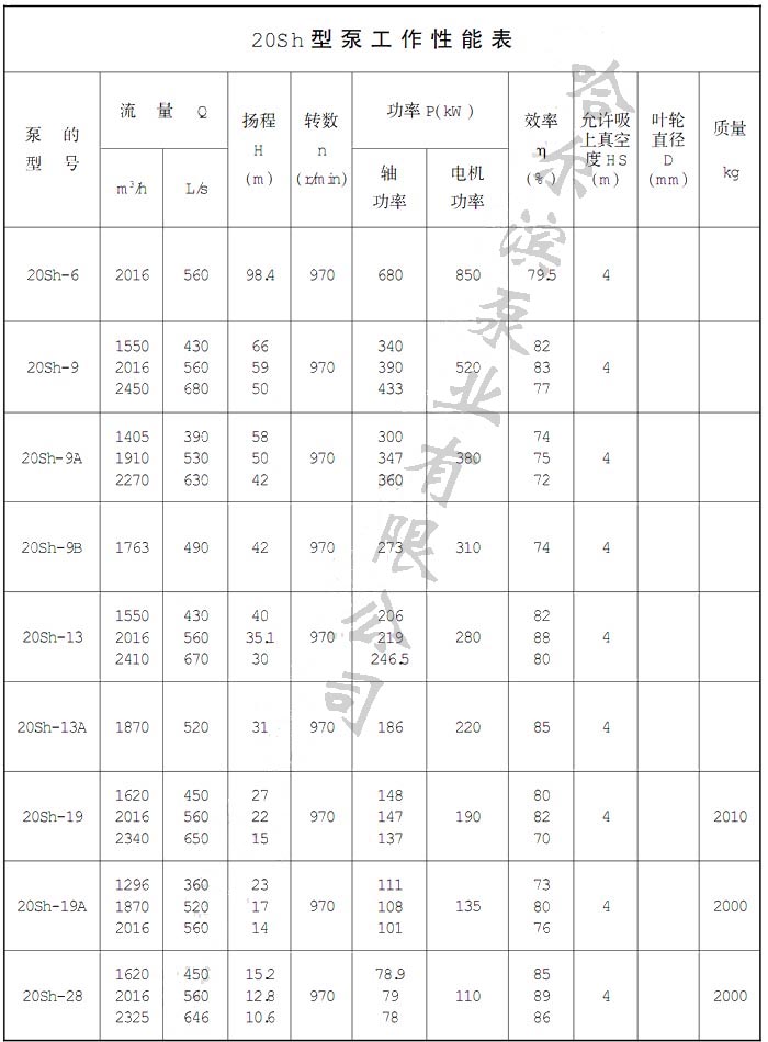 Sh型泵系單級、雙吸、泵殼中開的離心泵。 它適用于輸送清水及物理化學性質類似于水的其它液體。