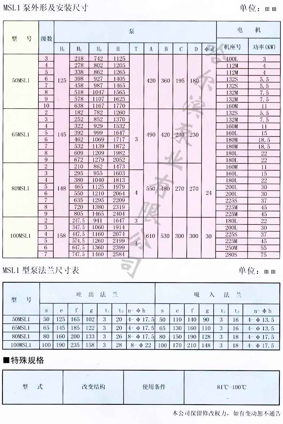 MSL、MSL1型 立式多級(jí)離心泵